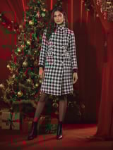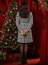 Black/White Houndstooth Tweed Double-Breasted Coat