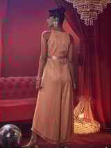 Pink Metallic Pleated Wide-Leg Maxi Jumpsuit
