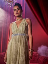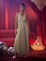 Silver Gold Metallic Pleated Wide-Leg Jumpsuit