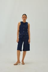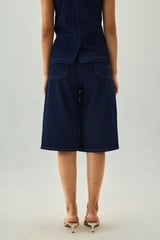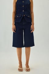 Blue Denim High-Rise Straight Bermuda Shorts