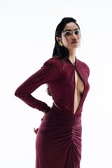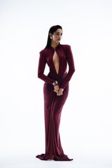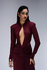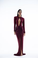 Wine Keyhole Neck Embellished Maxi Gown