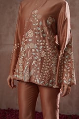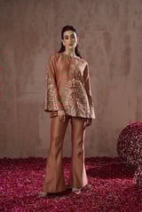 Rose Chanderi Silk Embroidered Co-ord Set with Bell Bottoms