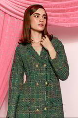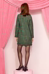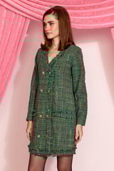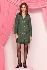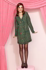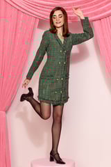 Green Tweed Checked Double-Breasted Mini Dress