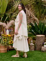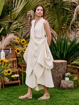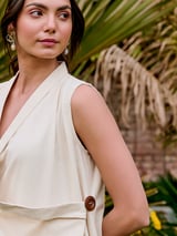 Ivory Draped Cowl Neck Overlap Tunic Top