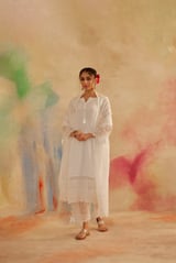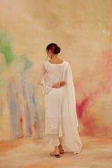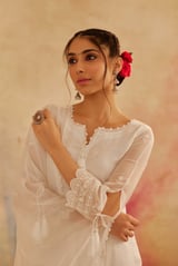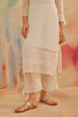 Ivory White Organza Embroidered Straight Suit Set
