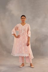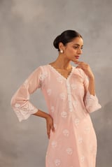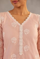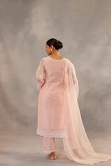 Peach Chanderi Embroidered Straight Suit Set With Dupatta