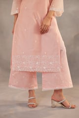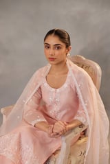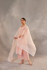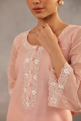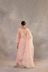 Peach Embroidered Straight Kurta Set with Dupatta