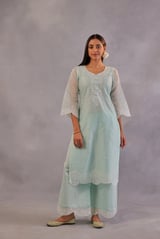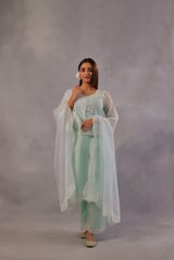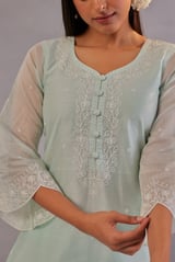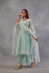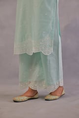 Mint Green Chanderi Embroidered Straight Suit Set