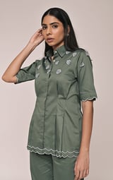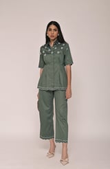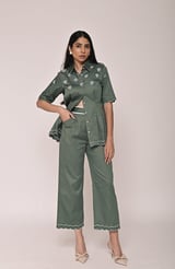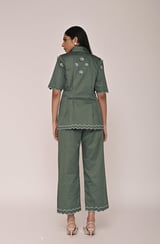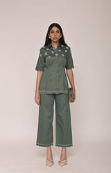 Light Green Scallop Hem Shirt and Wide-Leg Pants Co-ord Set