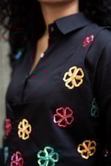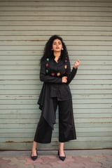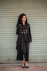 Side Drape Shirt+Bloom Jacket+Multi Colored Pants