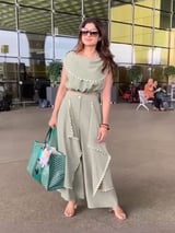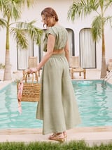 Green High-Rise Layered Drape Wide-Leg Trousers