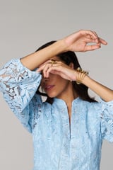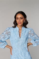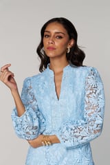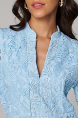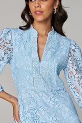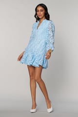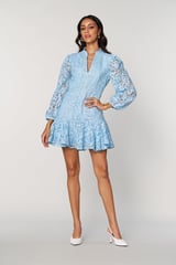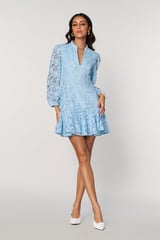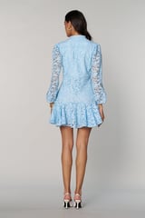 Blue Lace Fit and Flare Mini Dress with Bishop Sleeves
