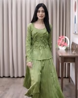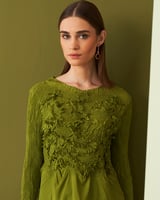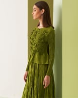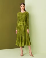 Lime Green Textured Top and Pleated Midi Skirt Co-ord Set