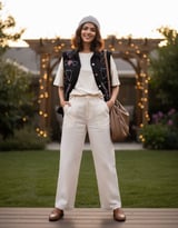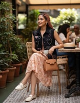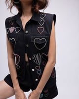 Sleeveless Denim Jacket With Multi-Colour Embellished Hearts