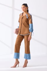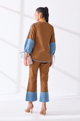 Tan and Denim Shell Embroidered Co-ord Set