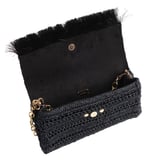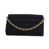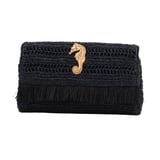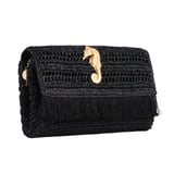 Jena Black Slim Raffia Clutch With Gold Emblem