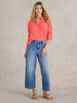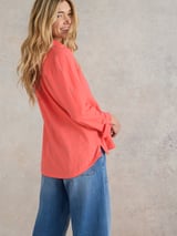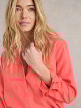 Bright Pink Organic Cotton Embroidered Button-Up Shirt