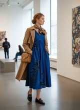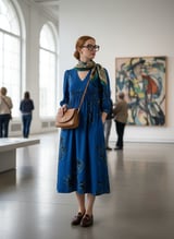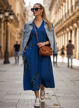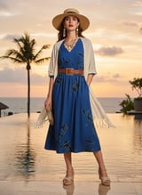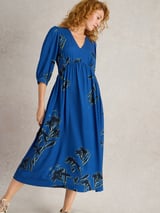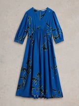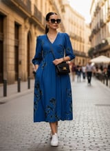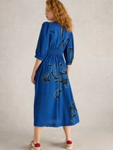 Blue Floral Fit and Flare V-Neck Midi Dress