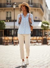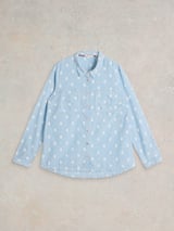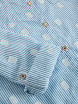 Blue Striped Geometric Dobby Cotton Button-Up Shirt