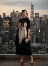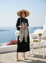 Black and White Tie-Dye Belted Maxi Dress with Cape Sleeves