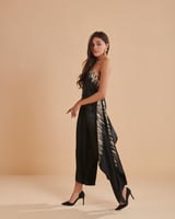 Black One-Shoulder Draped Co-ord Set with Wide-Leg Pants