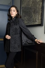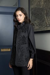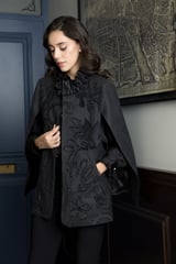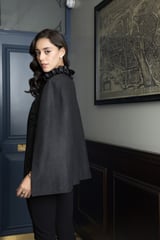 Charcoal Gray Herringbone Cape with Tonal Floral Detail