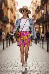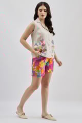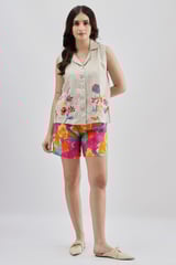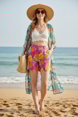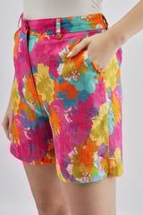 Fuschia Floral Printed Linen Shorts