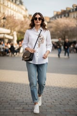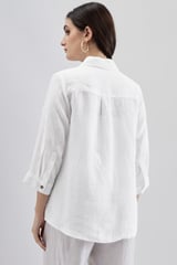 White Linen Shirt with Embroidered Dog Motif