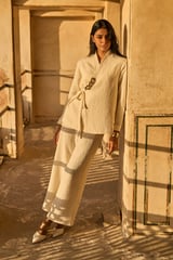 Ivory Textured Straight-Leg Trousers with Side Pockets