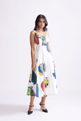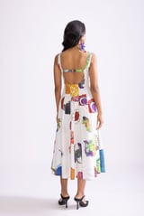 Ivory Multi Tribal Print Fit and Flare Midi Dress