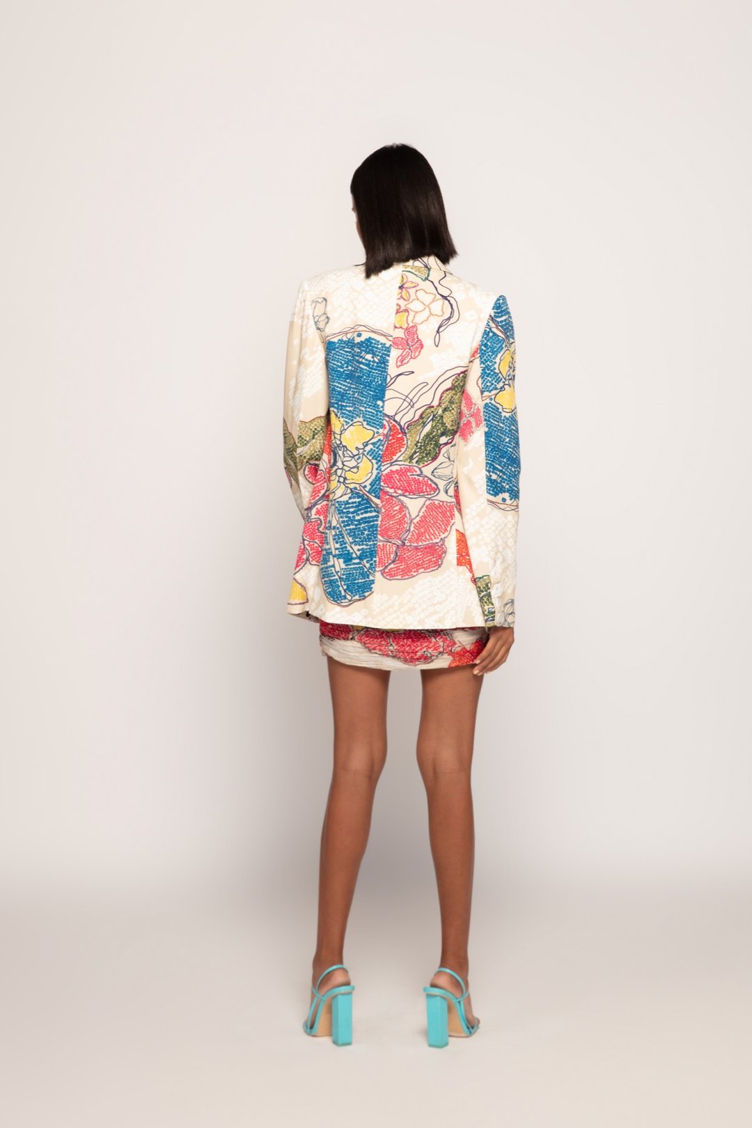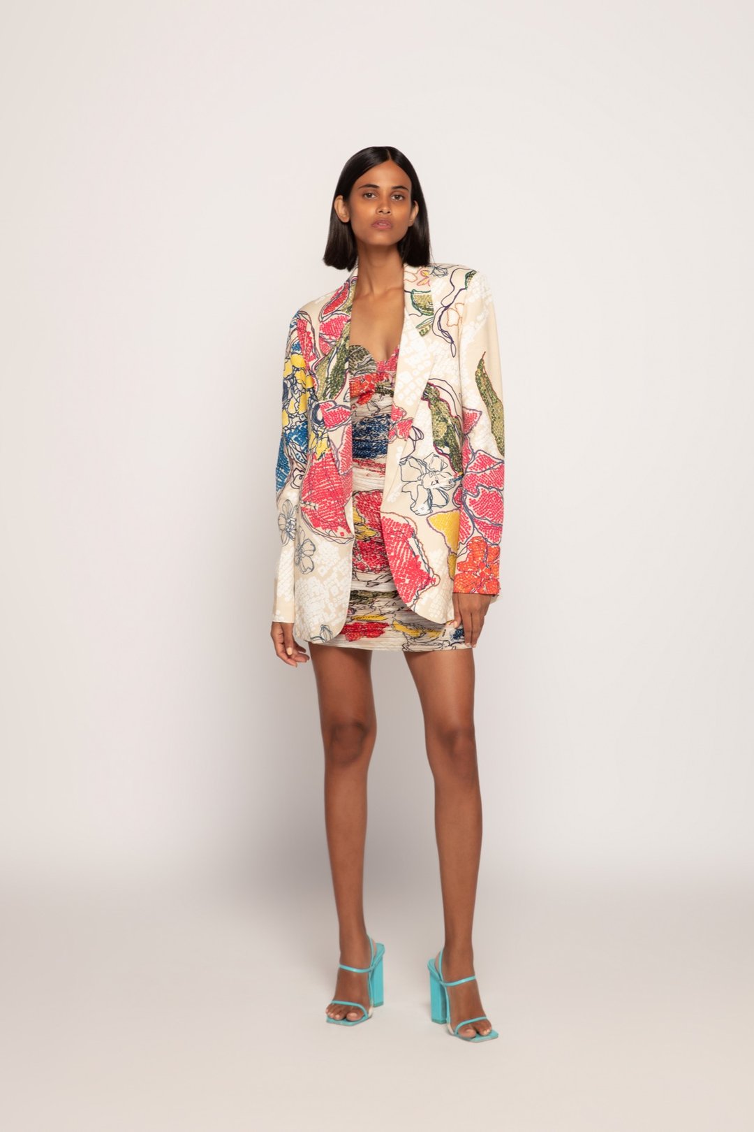 Periwinkle Bandhani Print Blazer Ivory Pink