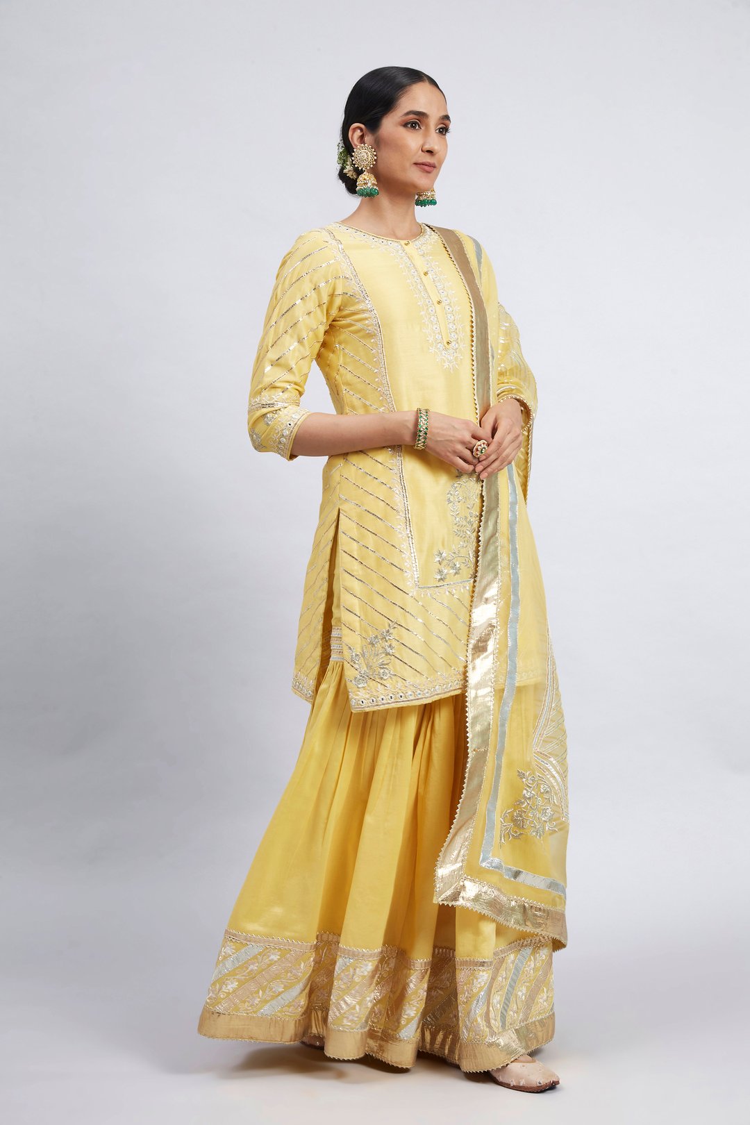 Eliza - Chanderi Silk Kurta and Garara Set with Organza Dupatta