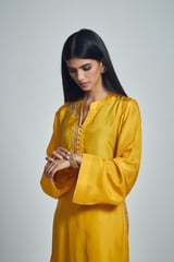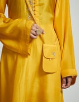 Happy Mustard Habutai Silk Gota Patti Choga Kurta