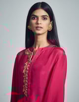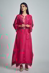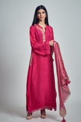 Pink Habutai Silk Straight Kurta with Gota Patti Embroidery