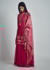 Nasira- Habutai Silk Gota Patti Embroidered Kurta With Garara And Dupatta