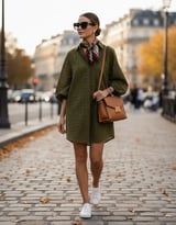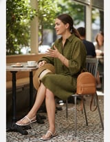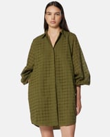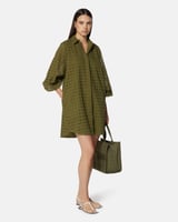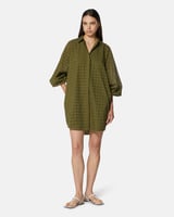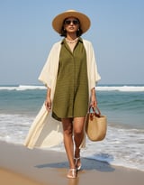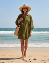 Olive Green Sangallo Cotton Shirt Dress with Cutwork