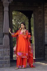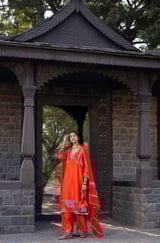 Orange Luxurious Chanderi Silk Suit