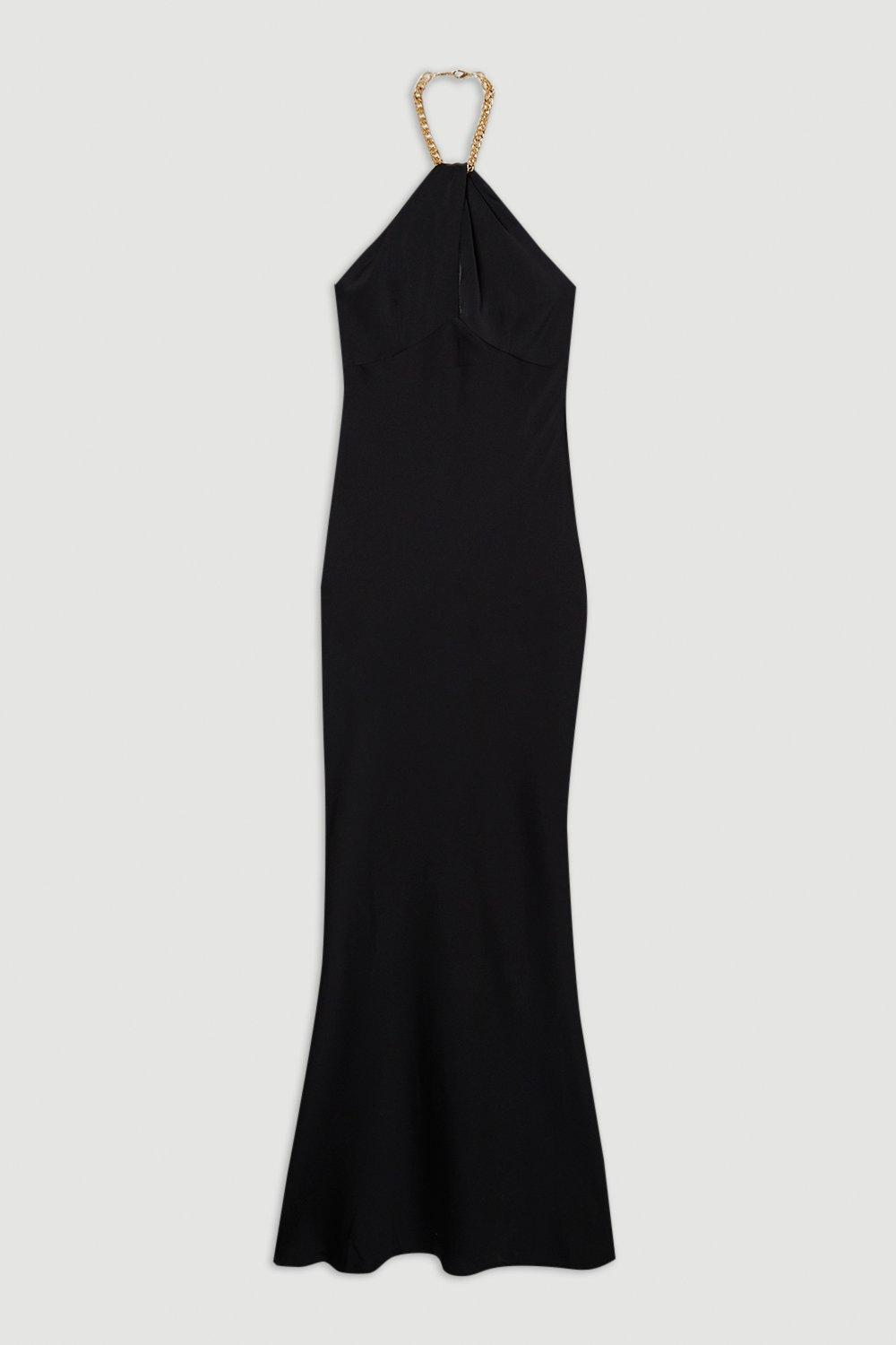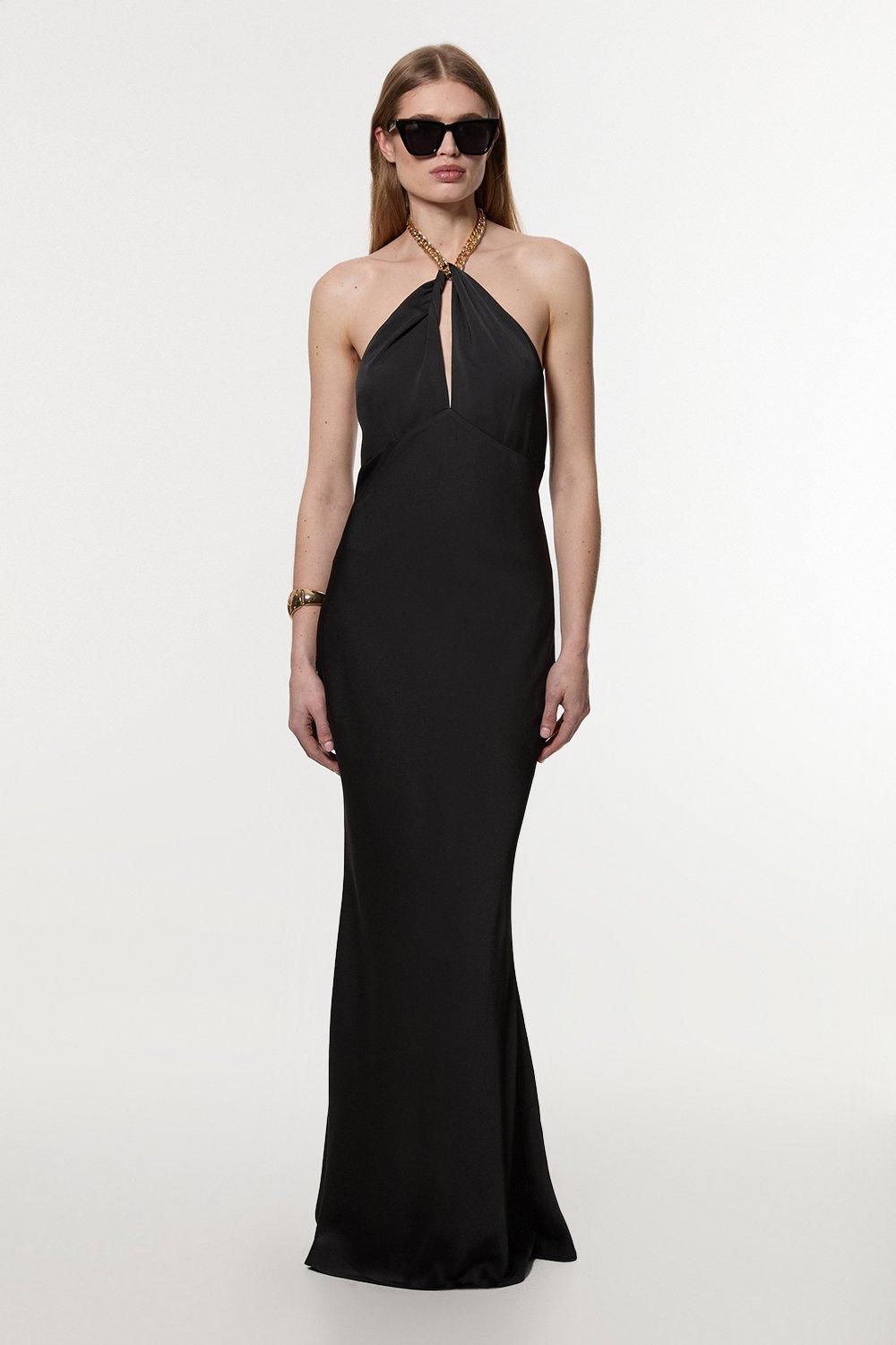Satin Back Crepe Chain Detail Bias Midi Dress