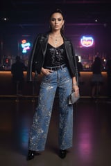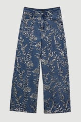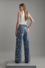Mid Blue Wide-Leg Sequin Embellished Jeans