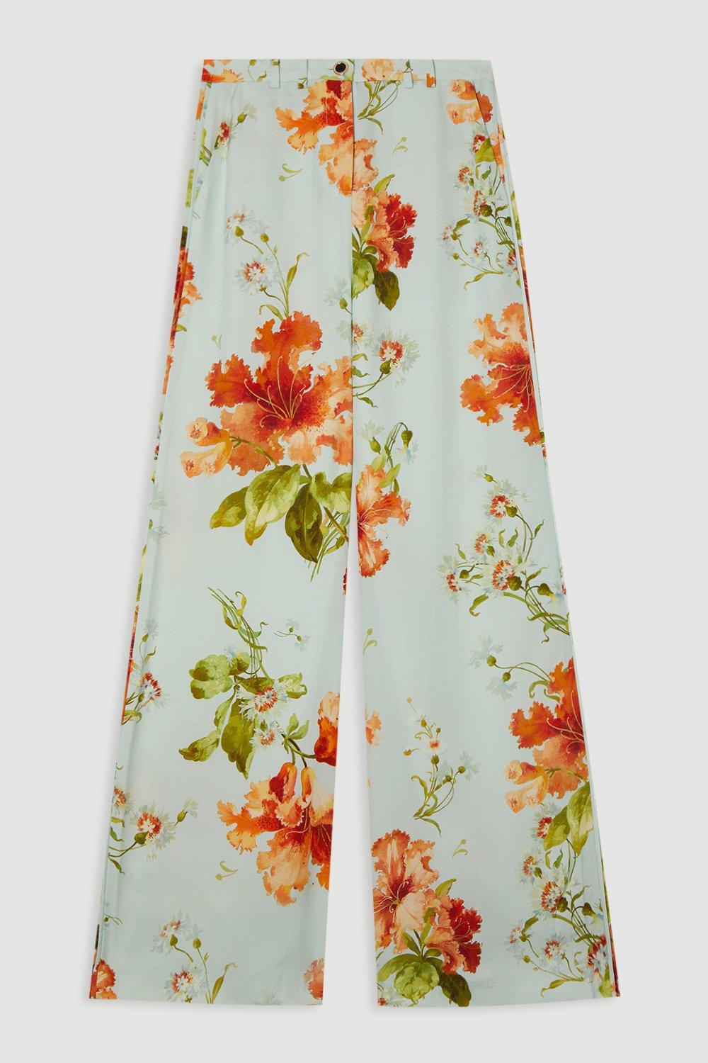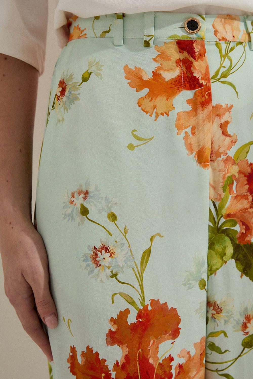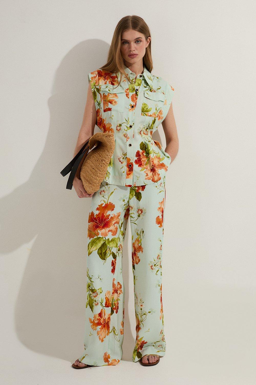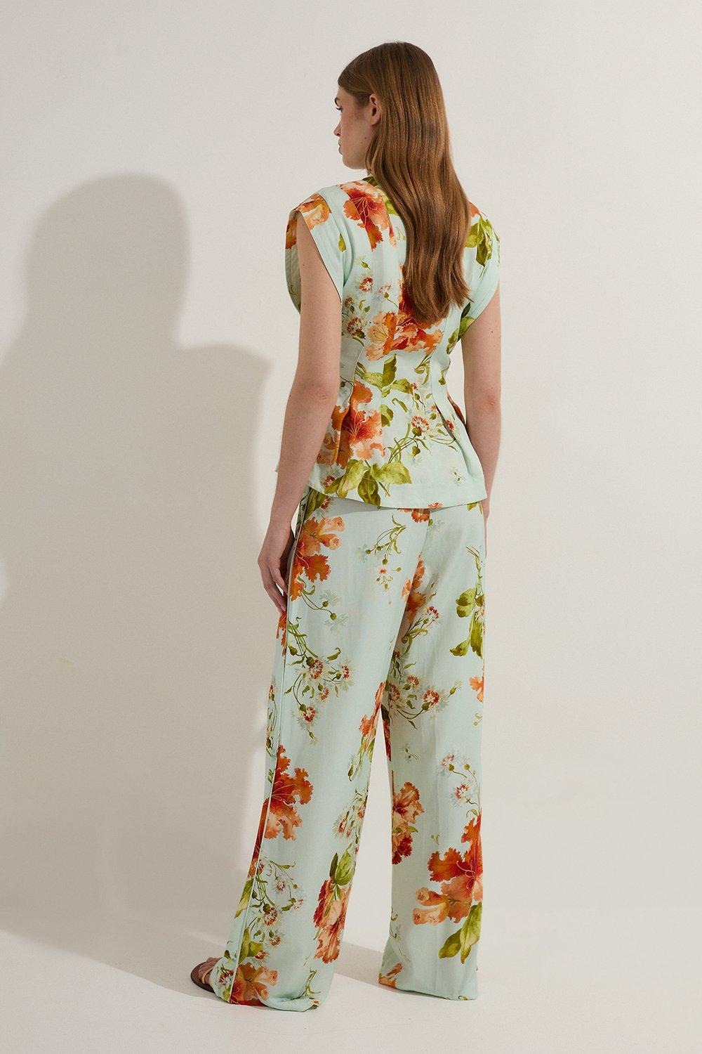 Premium Viscose Linen Floral Woven Straight Leg Trouser