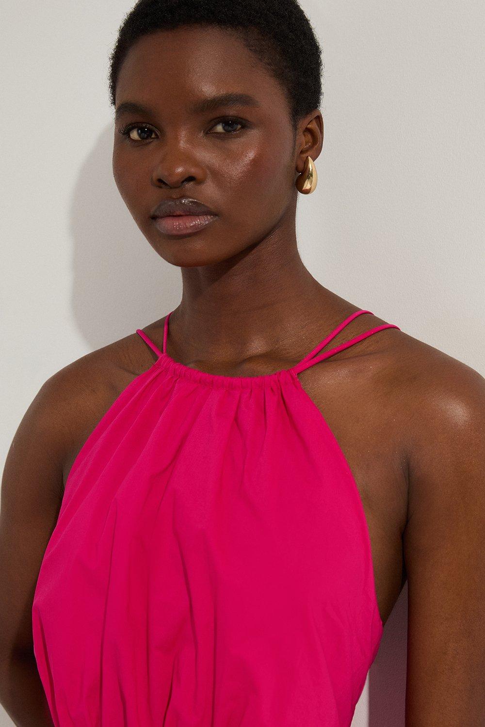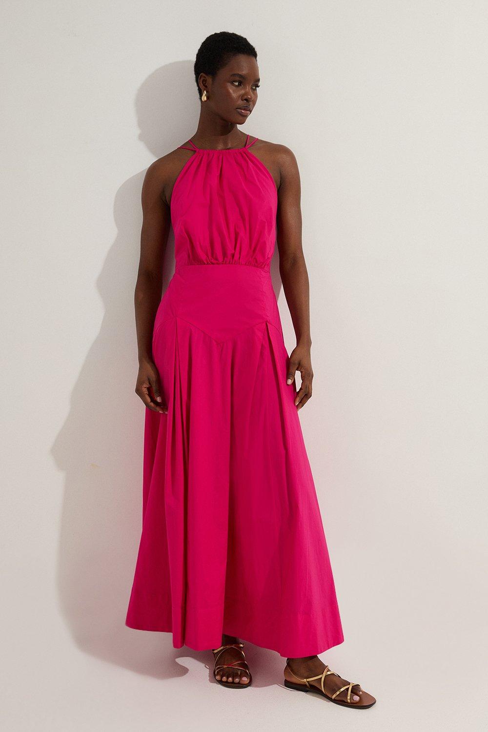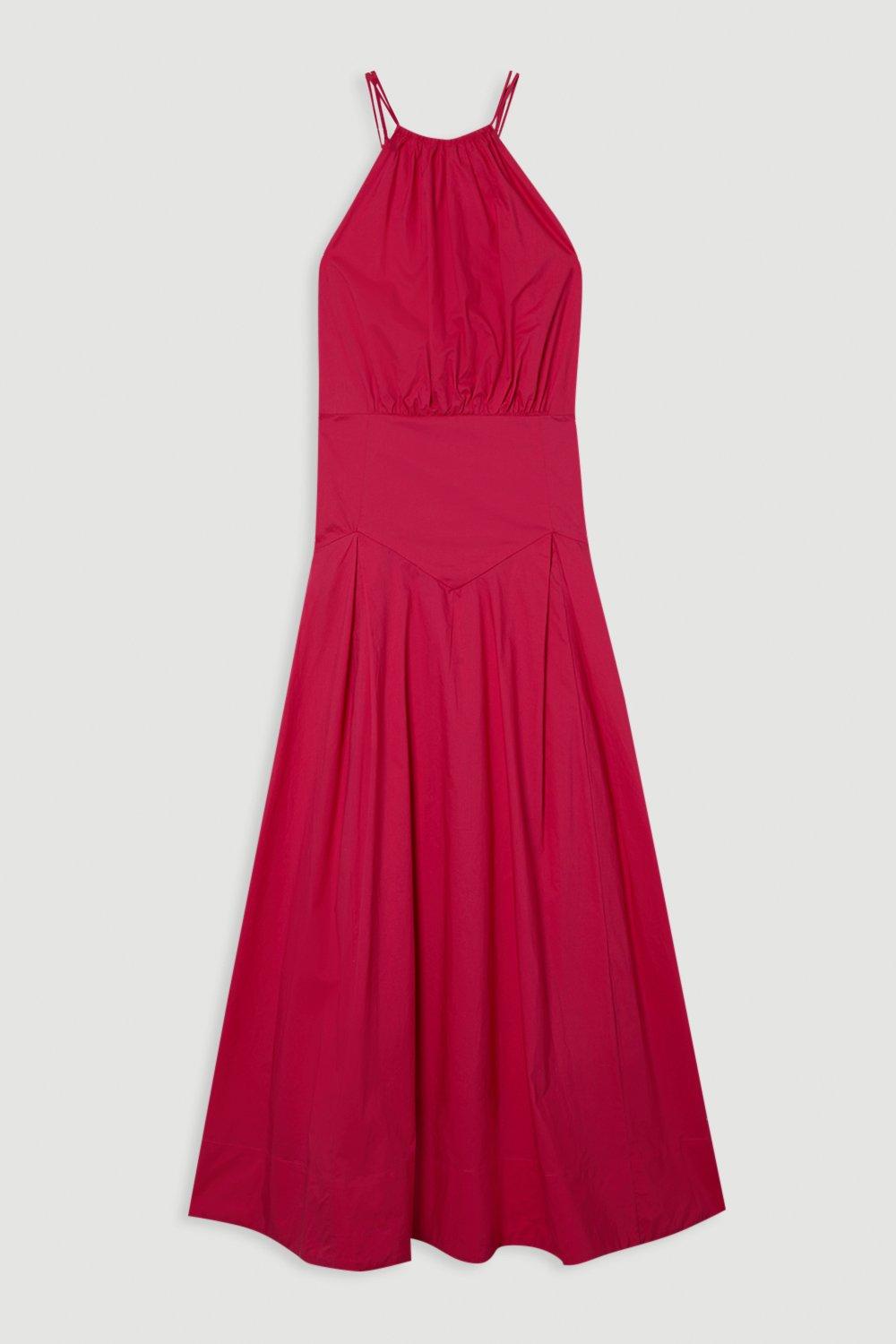 Cotton Halter Neck Woven Midi Dress with Dropped Waist Detail