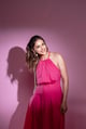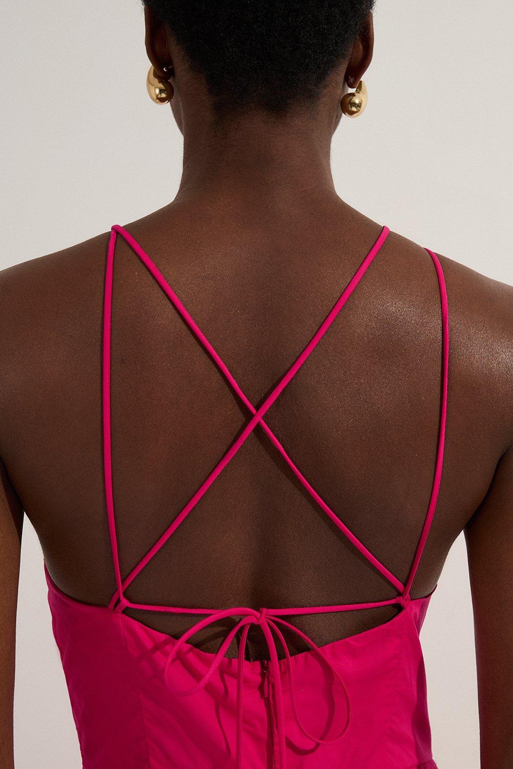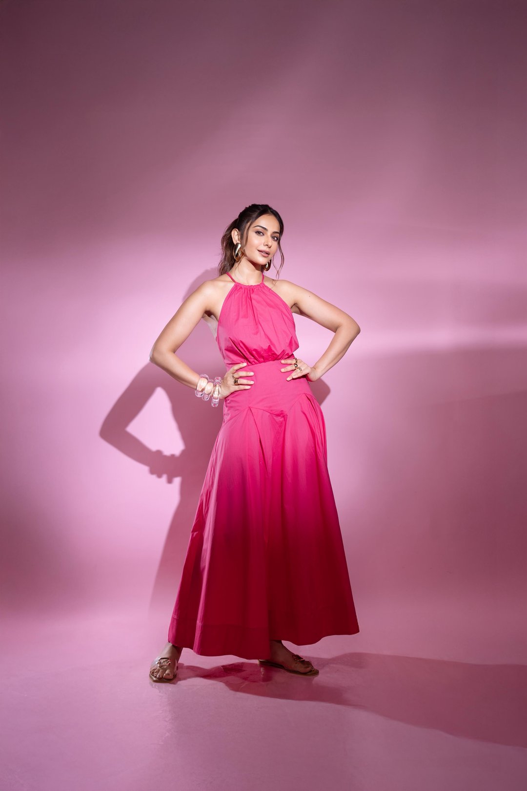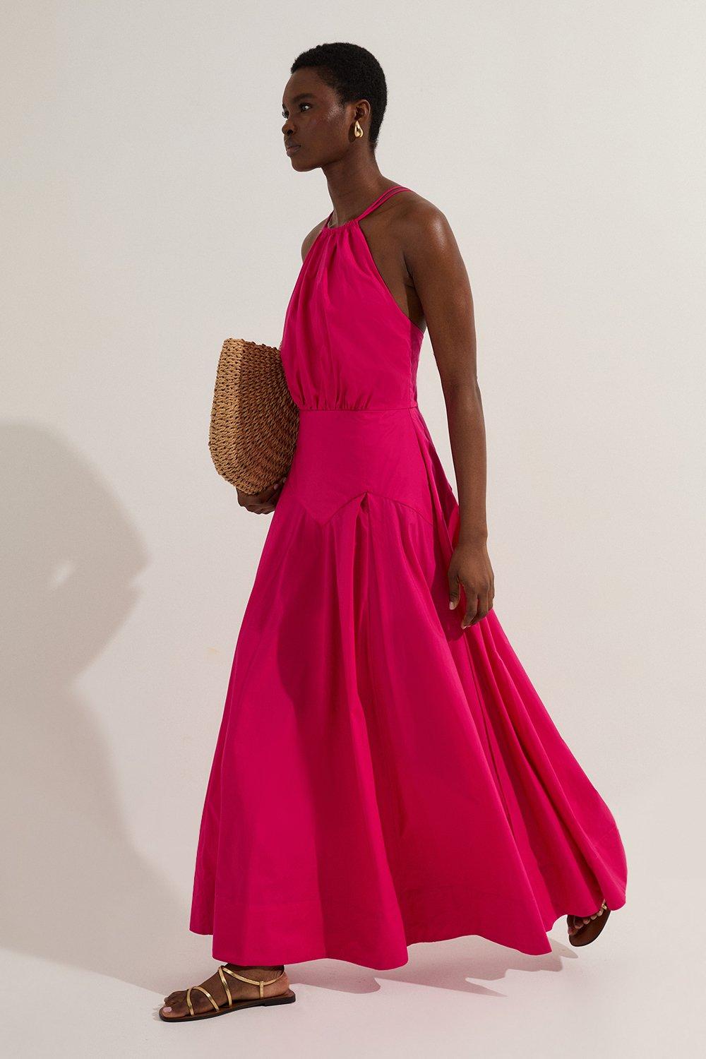 Cotton Halter Neck Woven Midi Dress with Dropped Waist Detail