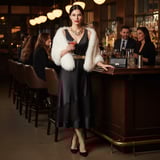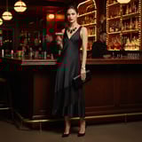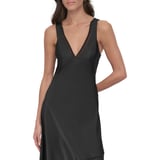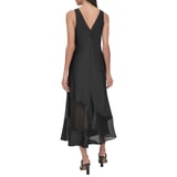 Black Satin Slip Midi Dress with Sheer Hem Panels
