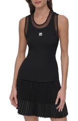 Black Slim-Fit Scoop-Neck Tank Top with Sheer Mesh Detail