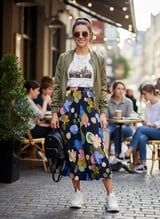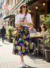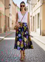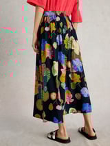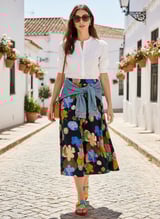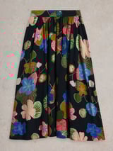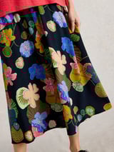 Navy Floral Print A-Line Midi Skirt