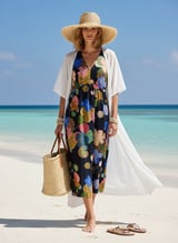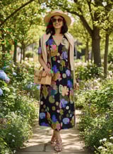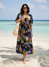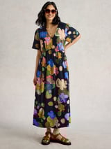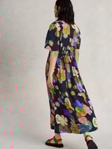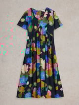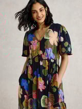 Navy Multi Floral V-Neck A-Line Midi Dress