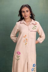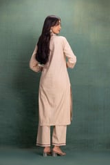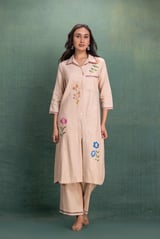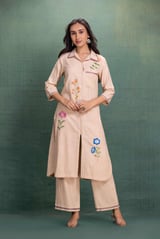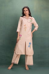 Beige Machine Embroidery Coord Set