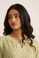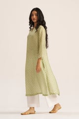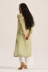 Pistachio Green Printed Silk Straight Kurta