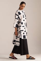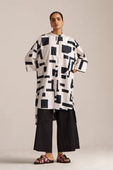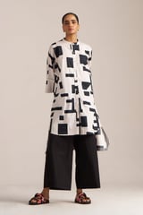 Black and White Geometric Print Asymmetrical Shirt Kurta