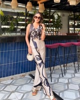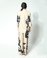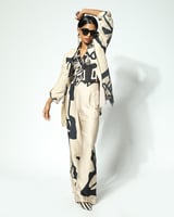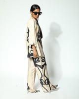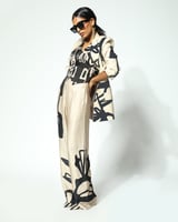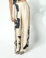 Beige and Black Abstract Print High-Waist Wide-Leg Trousers